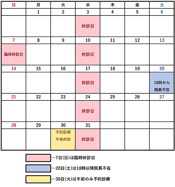 | ※毎週水曜日と祝日は休診日です。 |