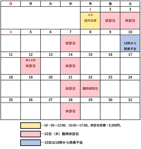 1月 1日(木) 臨時診療日。